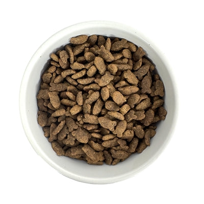 Analytische bestanddelen: Ruw eiwit 31%, ruw vet 18%, ruwe celstof 2,4%, ruwe as 6,5%, vocht 10%, koolhydraten 32,1%, calcium 1,12%, fosfor 0,85%, natrium 0,35%, magnesium 0,09%, kalium 0,4%, taurine 1500 mg/kg, lysine 1,25%, methionine 0,73%, cystine 0,47%, threonine 1,12%, tryptofaan 0,25%, linolzuur 2,24%, linoleenzuur 0,14%