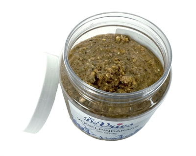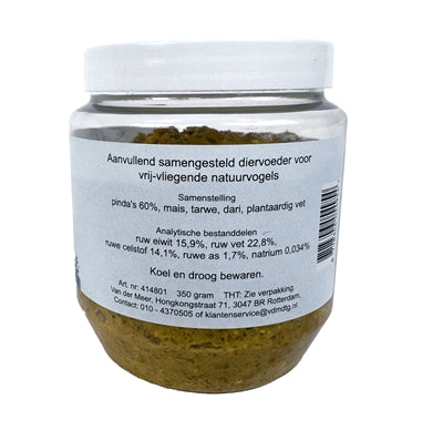 De Vries Vogelpindakaas 350 gr is aanvullende diervoeding voor tuinvogels waarmee je alle tuinvogels wat extra calorierijke voeding biedt tijdens de koude maanden van het jaar.