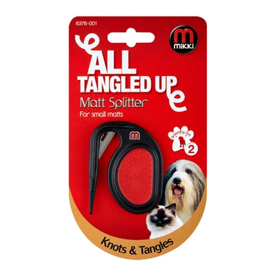 De Mikki Classic Matt Splitter is de ideale tool om thuis klitten uit de vacht van jouw hond te snijden. De Matt Splitter is een veilige en gemakkelijke manier om de klitten te verwijderen die je er niet uitgekamd krijgt. Ook ideaal voor klitten op plekken die lastiger te bereiken zijn, zoals achter de oren en oksels. De taps toelopende geleider dringt door de moeilijkste klitten.