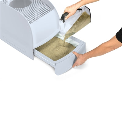 De ingang van deze kattenbak zit aan de bovenzijde. Dit zorgt ervoor dat honden de kattenbak niet kunnen betreden. Dankzij de innovatieve gaatjes aan de bovenkant valt het grit terug in de bak wanneer jouw kat de kattenbak verlaat, wat zorgt voor minder rommel rondom de bak. De uitschuifbare gritbak maakt het verschonen eenvoudig en efficiënt, waardoor je meer tijd overhoudt om van je huisdier te genieten.