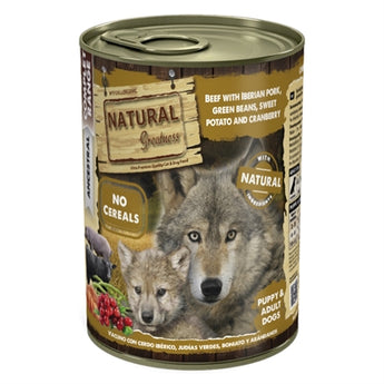 Natural Greatness Beef/Iberian Pork/Sweet Potato is compleet hondenvoer met twee hoogwaardige eiwitbronnen voor zowel pups als volwassen honden. Dit graanvrije voer is speciaal samengesteld met Iberisch varkensvlees en rundvlees, aangevuld met gezonde groenten en fruit zoals groene bonen, zoete aardappel en cranberry's.