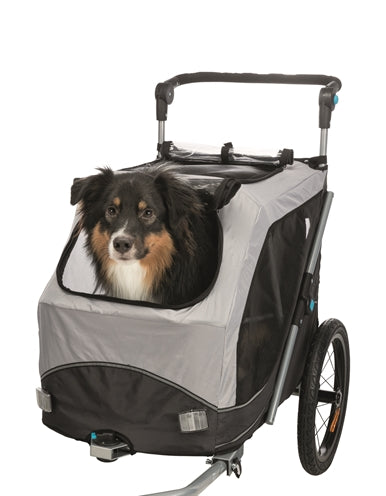 De Trixie Hondenfietskar Opvouwbaar Grijs van 103X74X95 cm is een handige kar die van alle gemakken voorzien is om jouw hond mee te nemen op fietstochtjes.
