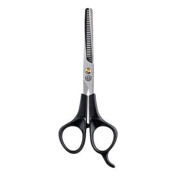 De Mikki Classic Effileerschaar Dubbel is een ideale schaar om thuis de vacht van je huisdier te trimmen. Regelmatig trimmen voorkomt vervilting en houdt je huisdier schoon. Met deze effileerschaar van Mikki kun je dit ook thuis doen! Deze schaar is uitermate geschikt om de dikke vacht uit te dunnen en voor een gemêleerde afwerking van de vacht. Een dubbele effileerschaar verwijdert meer haar dan een enkele, dus kies het type dat het meeste geschikt is voor de dikte van de vacht van jouw huisdier. Borstel de vacht goed door voordat je begint en geef je huisdier pauzes tijdens het trimmen om ongemak te voorkomen.