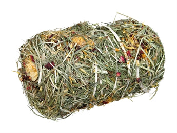 De Trixie Hooibaal Bloesemmix 18 cm is een heerlijke, natuurlijke snack voor konijnen en knaagdieren uit ruwvoer, met hooi en lekkere bloesems omwikkeld met henneptouw. Helemaal graanvrij! Deze leuke hooirol is een gezonde snack voor jouw knaagdier die de tandverzorging ondersteunt en verveling tegengaat. Dit kleine hooibaaltje bestaat uit heerlijk vers hooi met bloesems en omwikkeld met henneptouw. Jouw dier kan naar hartenlust knagen aan deze lekkere baal, wat verveling tegengaat, een correcte darmwerking ondersteunt en helpt bij de correcte afslijting van de tanden. Een zeer gezonde, natuurlijke snack die graanvrij is en geen toegevoegde suikers bevat!