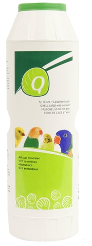 De schelpen in dit product helpen je vogel zijn zaden te vermalen en te verteren. Q schelpenzand is ook voorzien van oestergrit, wat een bron is van mineralen en calcium, en zorgt ervoor een mooie vederopbouw en sterke botten. Het zand is stofarm en stuift niet. Q Schelpenzand heeft door de toegevoegde anijsroma ook een verfrissende geur in jouw huiskamer.