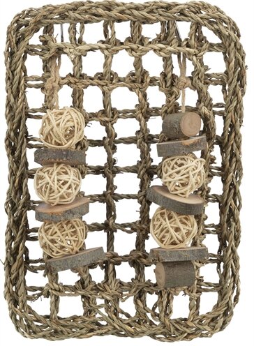 De Trixie Knaagdier Mat Met Speeltjes Zeegras 18X30 cm is een speeltje voor konijnen en knaagdieren met balletjes om aan te knagen. Verrijk het hok van jouw kleine vriendje met deze leuke mat! Hang het op in het hok en zie hoe jouw knager er plezier aan beleeft. Het gewoven zeegras is heerlijk om aan te knagen en de balletjes van hout en rotan maken het nog leuker!