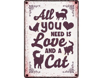 Plenty gifts waakbord blik all you need is love and a cat