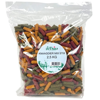 De Vries Knaagdier Mix Stix 2,5 kg zijn lekkere knapperige snacks voor knaagdieren en konijnen op basis van mais, in verschillende kleuren. Ideaal voor als je jouw dier een beloning of lekker tussendoortje wilt geven! De sticks hebben een handig formaat waardoor ze precies groot genoeg zijn als snack en zijn gemaakt van mais en zonnebloemolie.